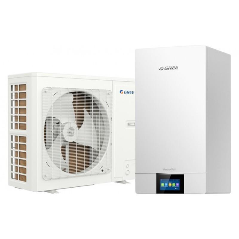 Тепловые насосы Gree GRS-CQ10PdG/NhH2-M серии Versati III (сплит-системы с водяным баком) «воздух-вода» с инверторными компрессорами с впрыском пара предназначены для нагрева воды для горячего водоснабжения или напольного отопления, а также для отопления или охлаждения воздуха в помещении до 100 м²Особенности и функции Gree GRS-CQ10PdG/NhH2-M